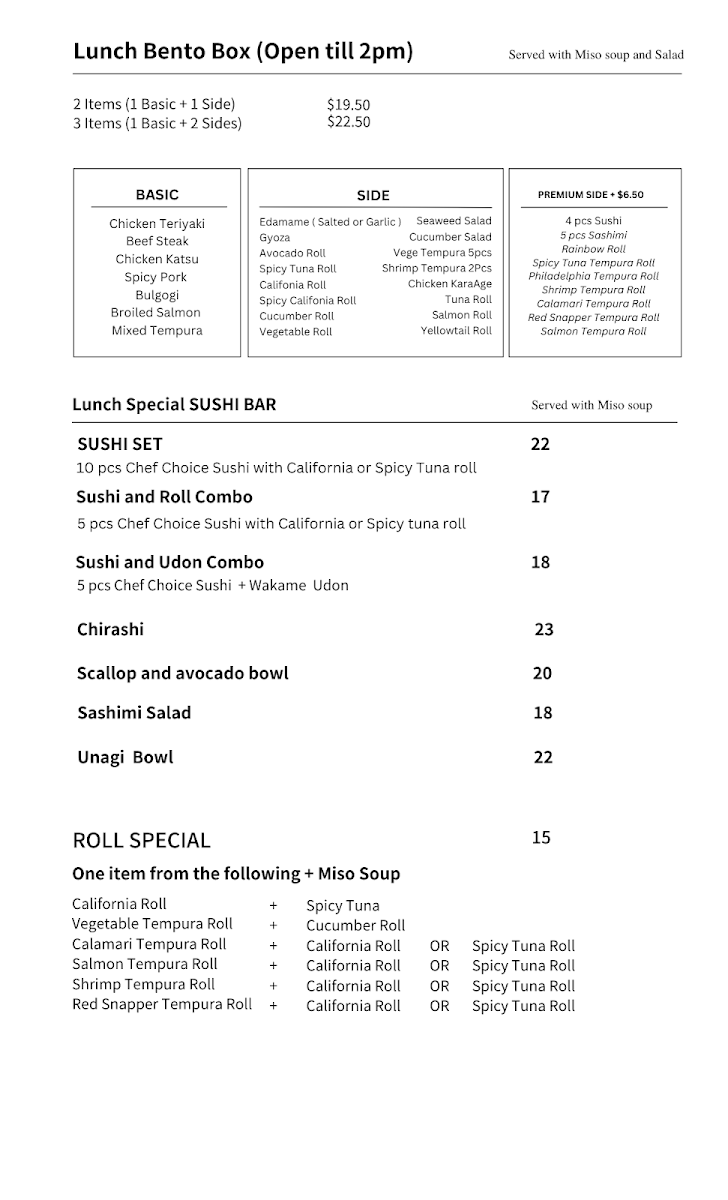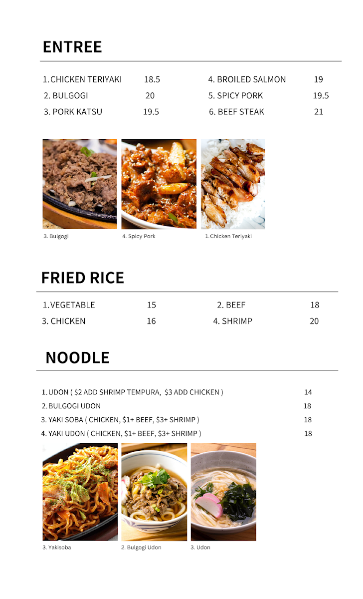 The menu is a treasure trove of Japanese cuisine, showcasing a variety of sushi and noodle dishes. Among their most popular offerings is the Baked Eel Roll, which has received rave reviews for its fresh ingredients and generous portions. Customers have described the sushi as "the best" they've tasted, emphasizing the quality and attention to detail involved in each dish. If you're in the mood for something heartier, try the Bulgogi Udon—a comforting bowl that perfectly blends savory flavors with rich textures.